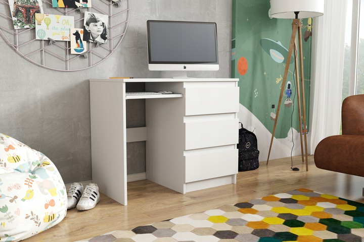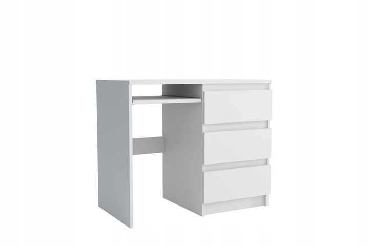 Kolekcja biurka LEO to system mebli o nowoczesnej formie i minimalistycznym wyglądzie. Fronty bez uchwytów nadadzą każdemu wnętrzu nowoczesny klimat. Pojemne biurko składa się z trzech szuflad, które pomieszczą najpotrzebniejsze rzeczy, a wysuwany blat idealnie nada się na klawiaturę do komputera. Biurko wykonane jest z płyty laminowanej o grubości 16 mm firmy Kronospan, a jego powierzchnia jest odporna na wilgoć i ma podwyższoną odporność na zarysowania.