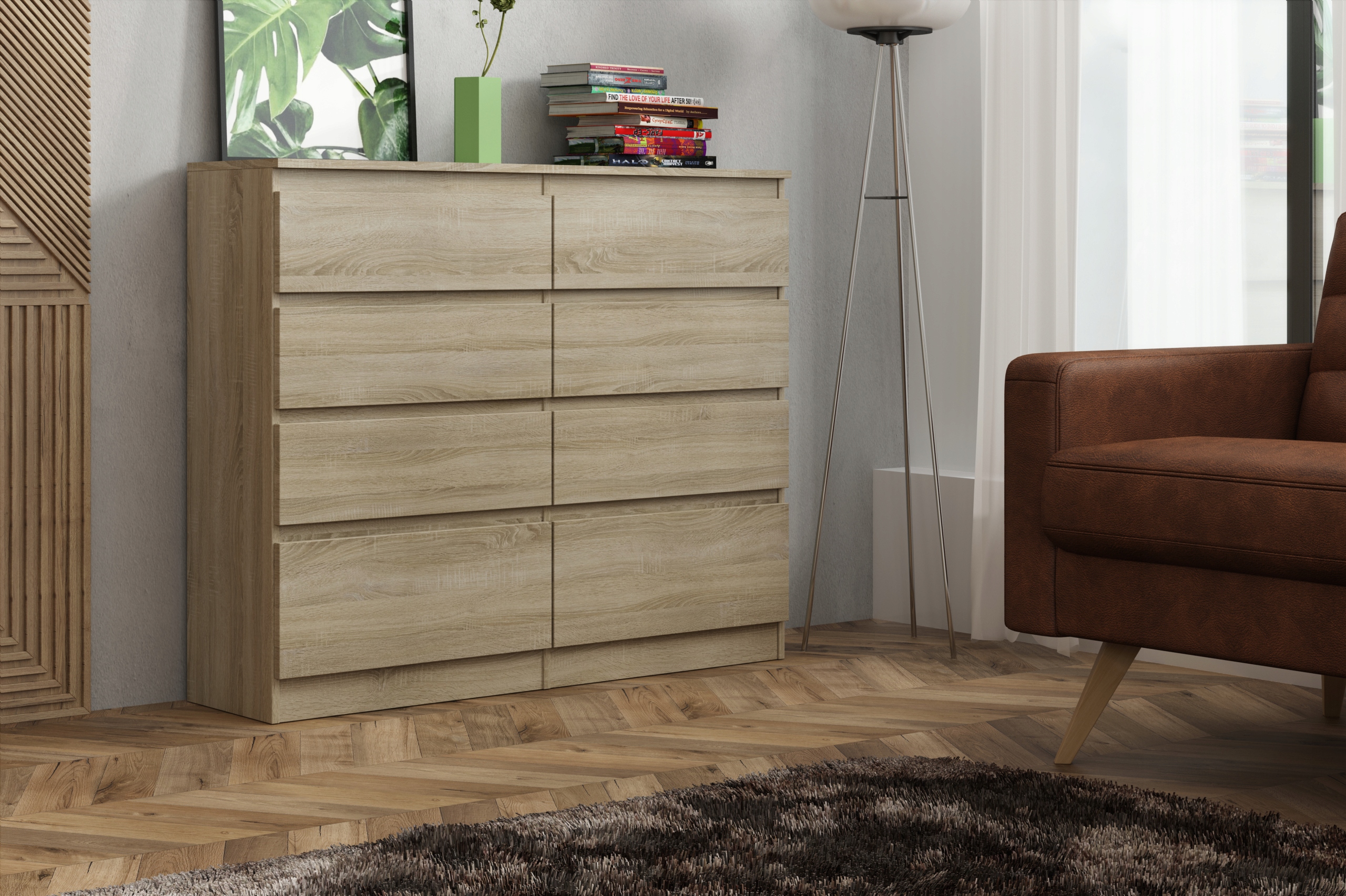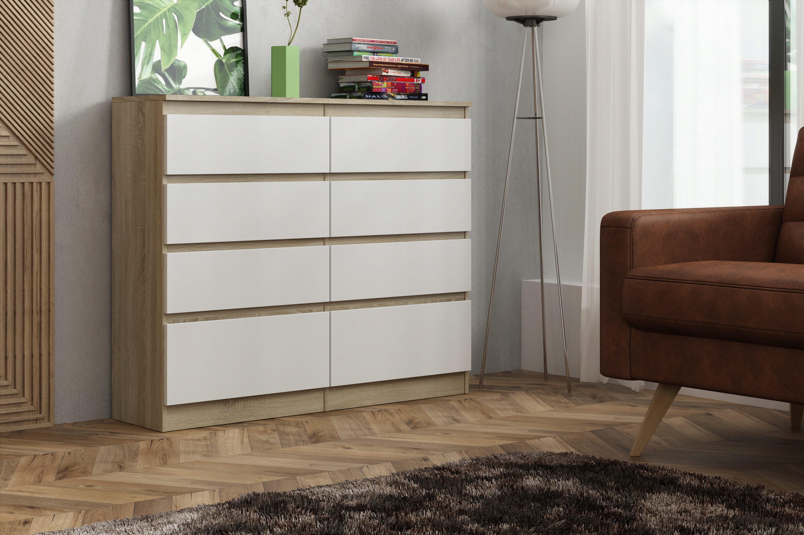 Komoda ARIEL spełni oczekiwania wszystkich ceniących sobie efektownie urządzone wnętrza, w których nowoczesność łączy się z funkcjonalnością. Wnętrze komody wypełniają pojemne oraz praktyczne szuflady, które dają sporo miejsca do zagospodarowania i ułatwiają utrzymanie porządku. Zmieścisz w nich wiele domowych akcesoriów. Komoda będzie doskonale prezentować się jako element wyposażenia salonu, jadalni, czy sypialni. Komoda w paczkach do samodzielnego montażu.
