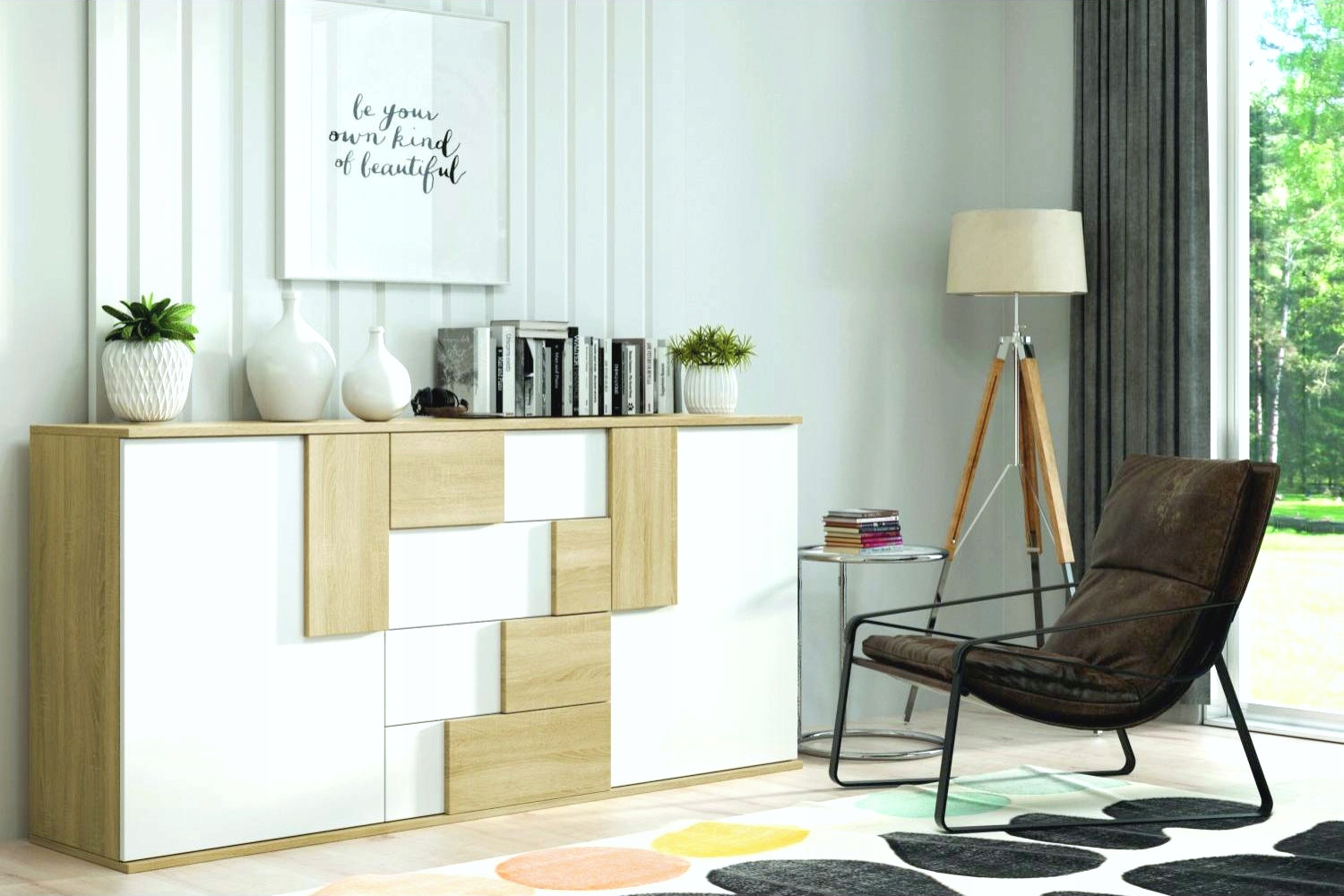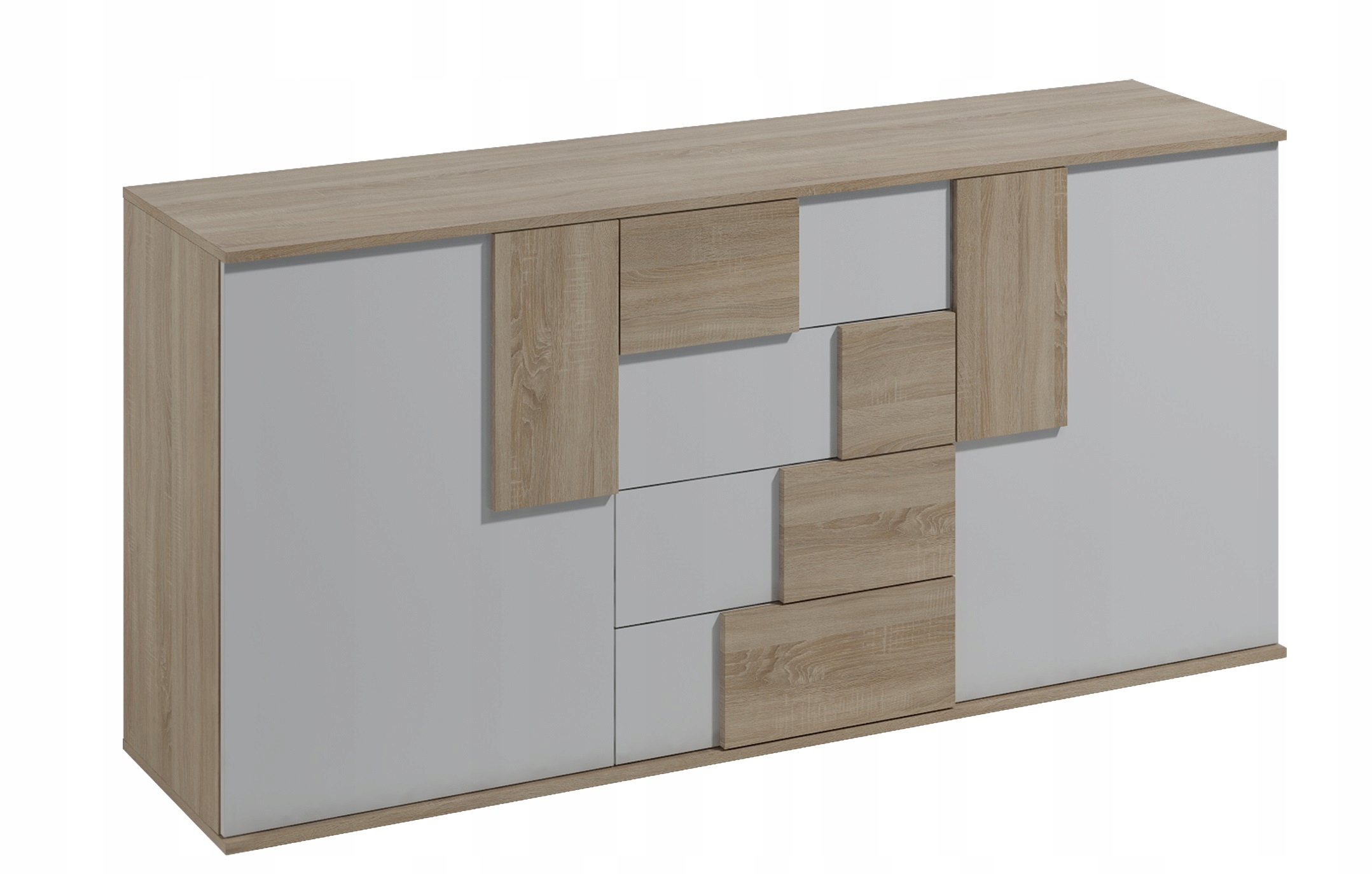 Komoda ELSTRA 2 spełni oczekiwania wszystkich ceniących sobie efektownie urządzone wnętrza, w których nowoczesność łączy się z funkcjonalnością. Wnętrze komody wypełniają cztery pojemne półki i szuflady, które dają sporo miejsca do zagospodarowania i ułatwiają utrzymanie porządku. Zmieścisz w nich wiele domowych akcesoriów. Komoda będzie doskonale prezentować się jako element wyposażenia salonu, jadalni, czy sypialni. Dzięki różnorodnej kolorystyce komodę można zestawiać z wieloma innymi meblami.