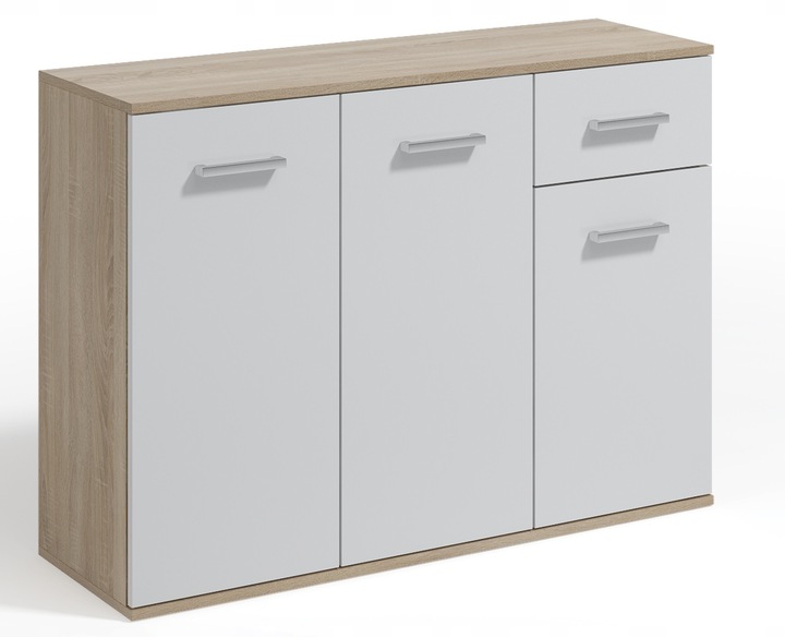 Komoda JACOB V spełni oczekiwania wszystkich ceniących sobie efektownie urządzone wnętrza, w których nowoczesność łączy się z funkcjonalnością. Wnętrze komody wypełniają pojemne półki, które dają sporo miejsca do zagospodarowania i ułatwiają utrzymanie porządku. Zmieścisz w nich wiele domowych akcesoriów. Komoda będzie doskonale prezentować się jako element wyposażenia salonu, jadalni, czy sypialni. Dzięki różnorodnej kolorystyce komodę można zestawiać z wieloma innymi meblami.