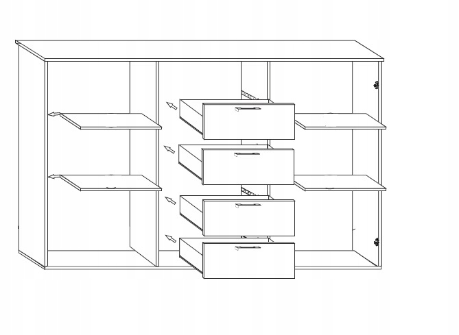 Komoda MALMO 1 spełni oczekiwania wszystkich ceniących sobie efektownie urządzone wnętrza, w których nowoczesność łączy się z funkcjonalnością. Wnętrze komody wypełniają cztery pojemne półki i szuflady, które dają sporo miejsca do zagospodarowania i ułatwiają utrzymanie porządku. Zmieścisz w nich wiele domowych akcesoriów. Komoda będzie doskonale prezentować się jako element wyposażenia salonu, jadalni, czy sypialni. Dzięki różnorodnej kolorystyce komodę można zestawiać z wieloma innymi meblami. Uchwyty widoczne są na ostatnim zdjęciu.