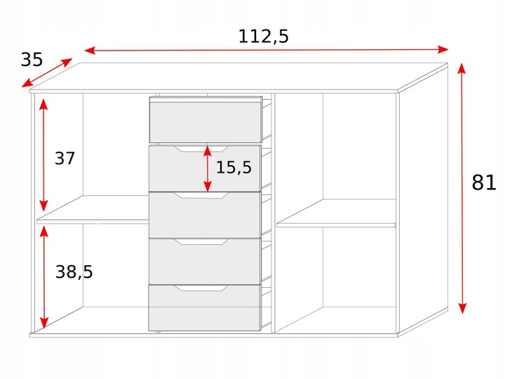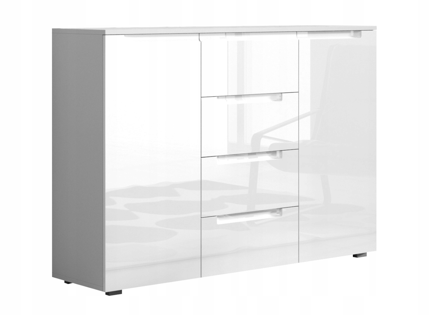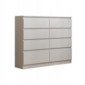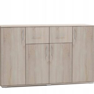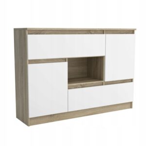 Komoda MESSA 2 spełni oczekiwania wszystkich ceniących sobie efektownie urządzone wnętrza, w których nowoczesność łączy się z funkcjonalnością. Wnętrze komody wypełniają cztery pojemne półki i cztery szuflady, które dają sporo miejsca do zagospodarowania i ułatwiają utrzymanie porządku. Zmieścisz w nich wiele domowych akcesoriów.