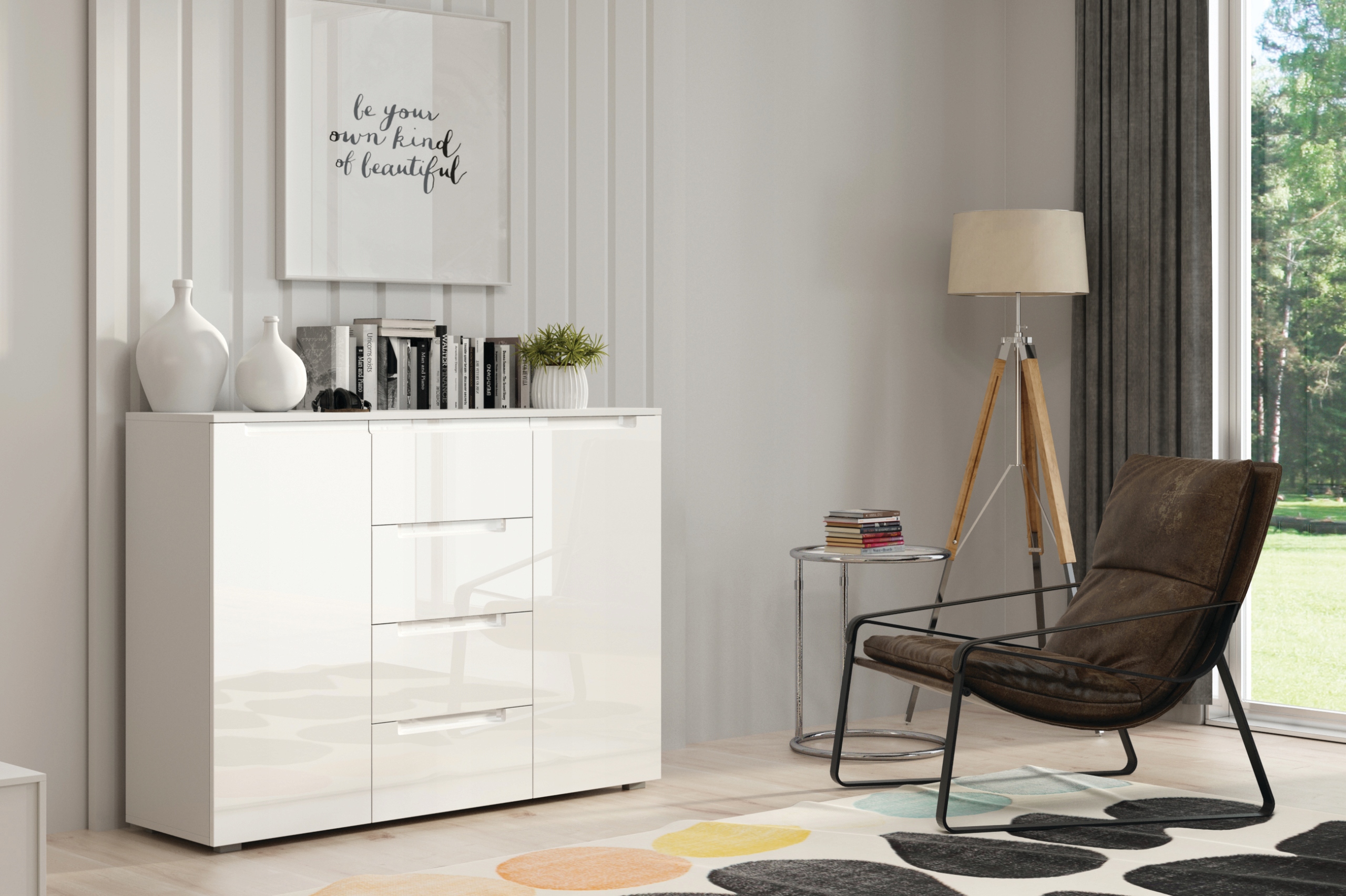 Komoda będzie doskonale prezentować się jako element wyposażenia salonu, jadalni, czy sypialni.