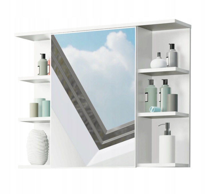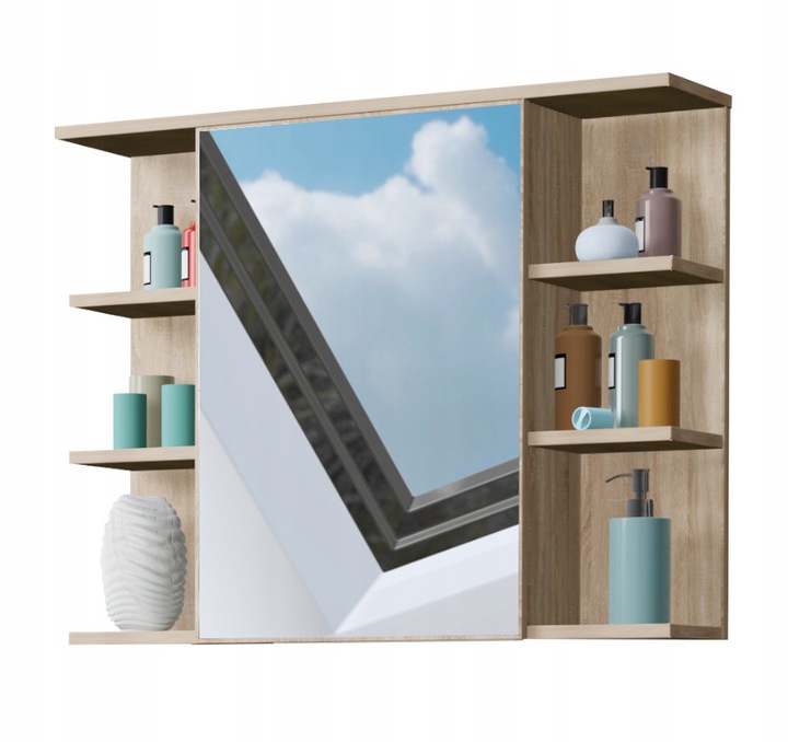Praktyczne i duże lustro kryje za sobą dodatkowe półki, dzięki czemu można tam schować najbardziej potrzebne kosmetyki. Ciekawa, a zarazem klasyczna kolorystyka wkomponuje się w styl Twojego mieszkania. Wykonane ze starannością z wysokiej jakości materiałów, co daje możliwość użytkowania przez długie lata.
