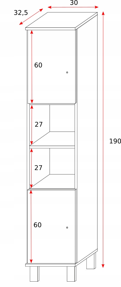 Wymiary: 30x190x32,5 cm