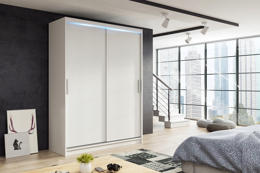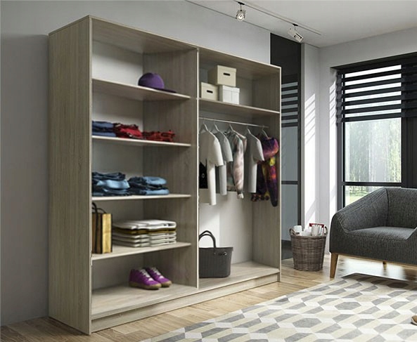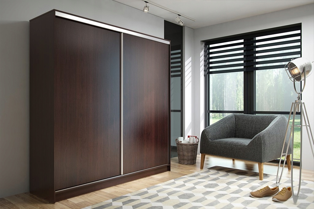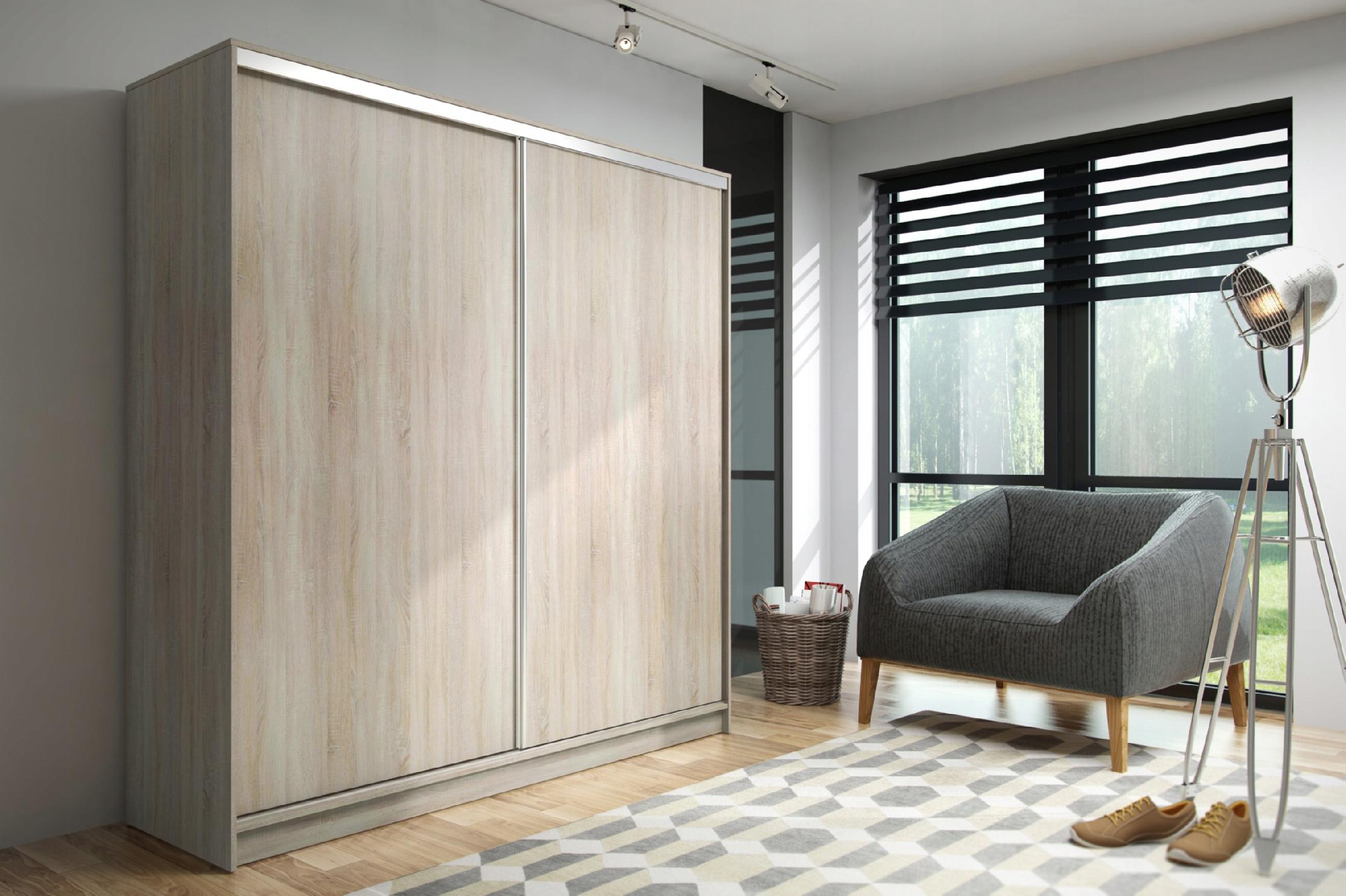 Szafa Edyta w stonowanej kolorystyce to idealne rozwiązanie dla osób ceniących prostotę i wygodę. Szafa przesuwna nadaje się do garderoby, sypialni lub salonu. Konstrukcja drzwi przesuwnych oparta jest na systemie Laguna. Meble wykonane z wysokiej jakości materiałów. Wnętrze szafy wyposażone jest w drążek oraz pięć półek, co zapewnia wysoki komfort użytkowania.