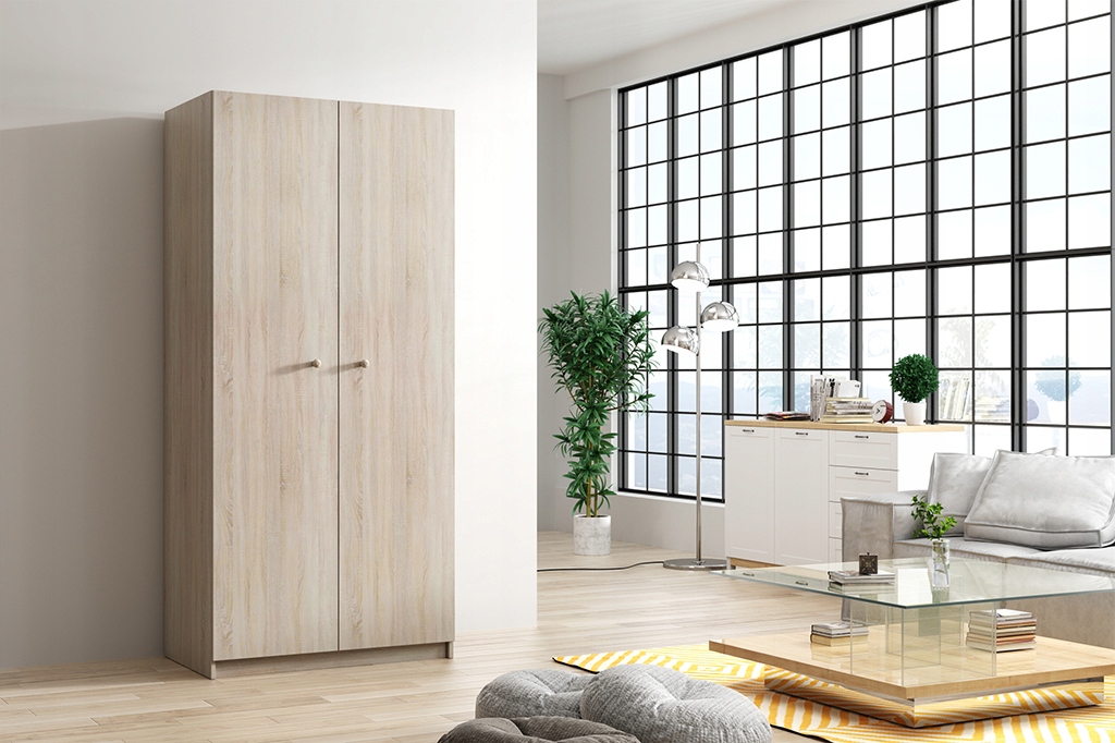 Szafa MALMO w stonowanej kolorystyce to idealne rozwiązanie dla osób ceniących prostotę i wygodę. Szafa otwierana nadaje się do garderoby lub sypialni. Meble wykonane z wysokiej jakości materiałów. Wnętrze szafy wyposażone jest w pięć półek oraz drążek co zapewnia wysoki komfort użytkowania.