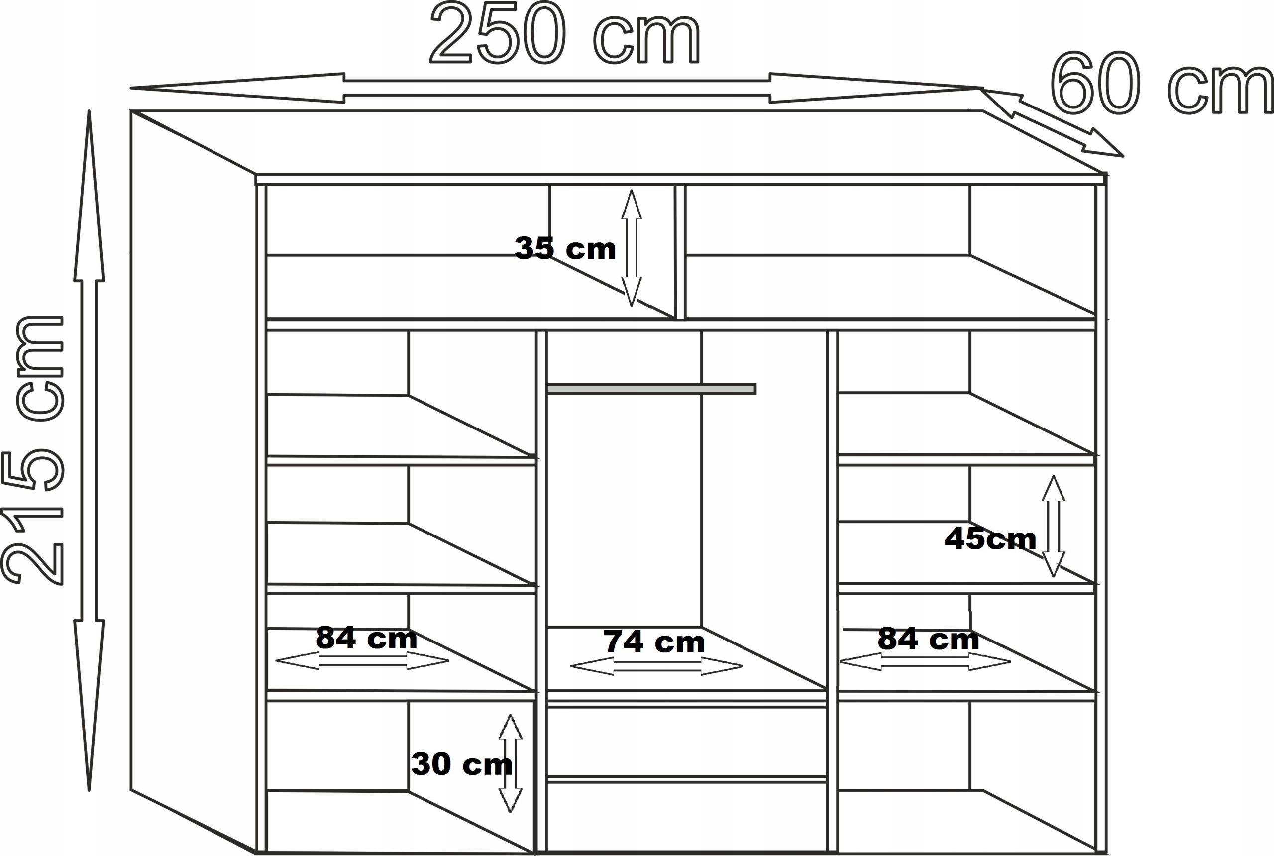 Wymiary: 250x215x60 cm