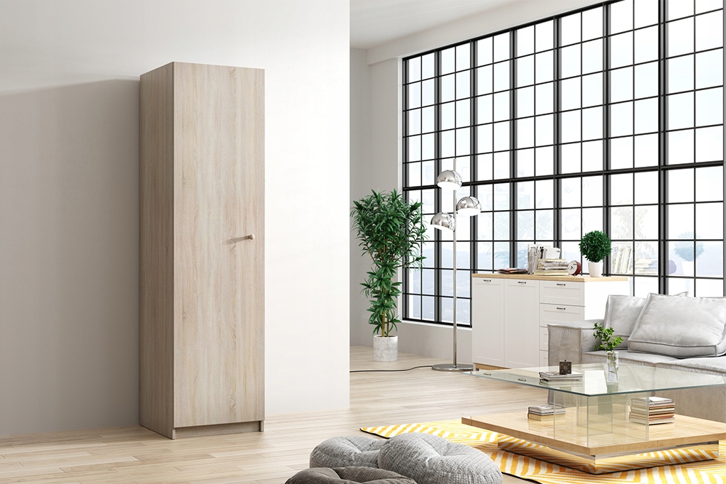 Nowoczesna szafa MAXI 5 wykonana jest w stylu, który wkomponuje się niemal w każde wnętrze. Ze względu na swą funkcjonalność szafa nadaje się do przedpokoju, salonu czy też biura. Dzięki idealnemu rozmieszczeniu półek szafa staje się bardzo pojemna. Ciekawa, a zarazem klasyczna kolorystyka wkomponuje się w styl Twojego mieszkania. Wykonana ze starannością z wysokiej jakości materiałów daje pewność użytkowania przez długie lata.