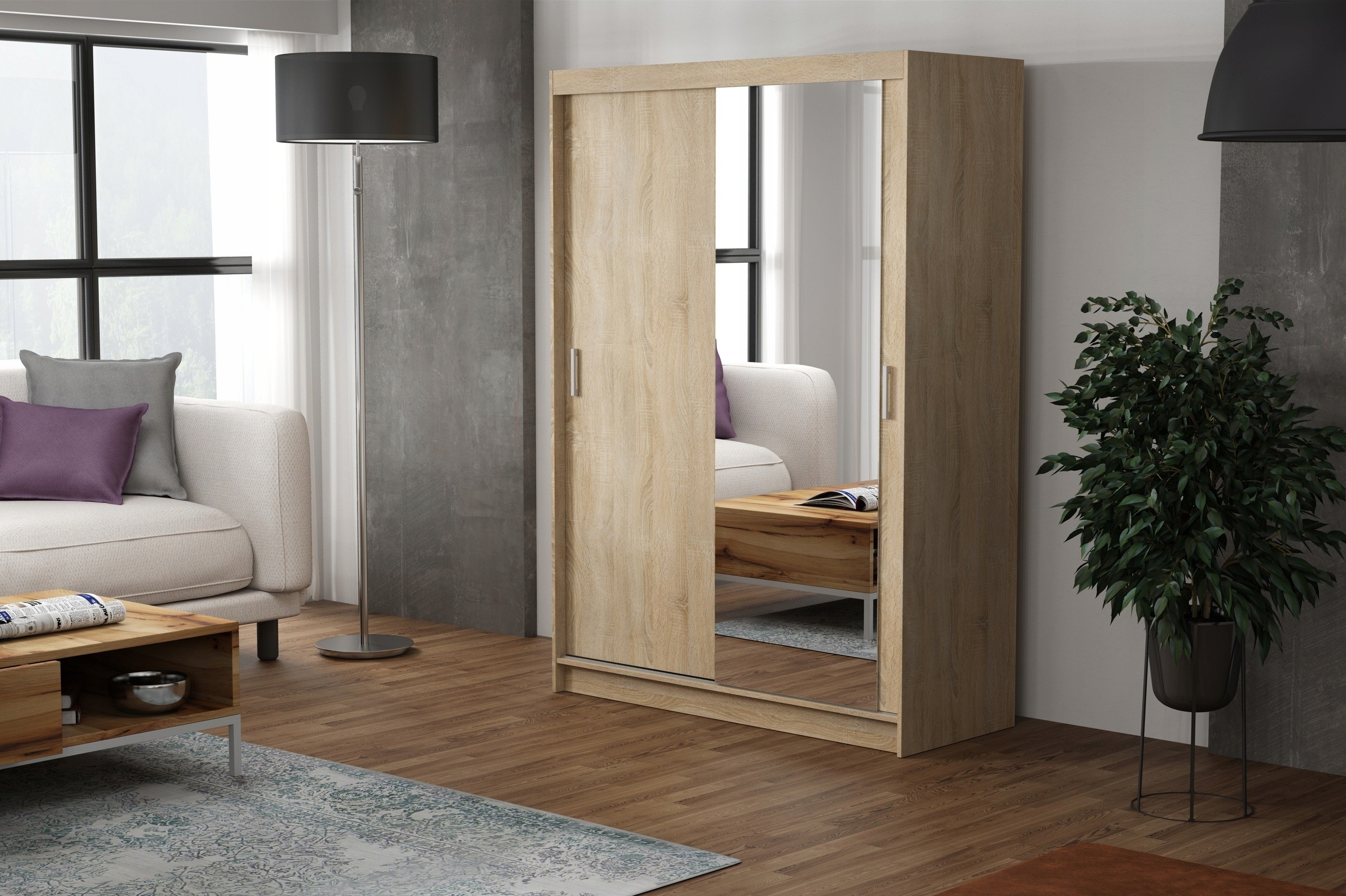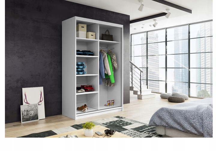 Nowoczesna szafa przesuwna RIO 150 wykonana jest w stylu, który wkomponuje się niemal w każde wnętrze. Ze względu na swą funkcjonalność szafa nadaje się do przedpokoju, salonu czy też biura. Dzięki idealnemu rozmieszczeniu półek i drążków szafa staje się bardzo pojemna. Ciekawa, a zarazem klasyczna kolorystyka wkomponuje się w styl Twojego mieszkania. Wykonana ze starannością z wysokiej jakości materiałów, co daje możliwość użytkowania przez długie lata.