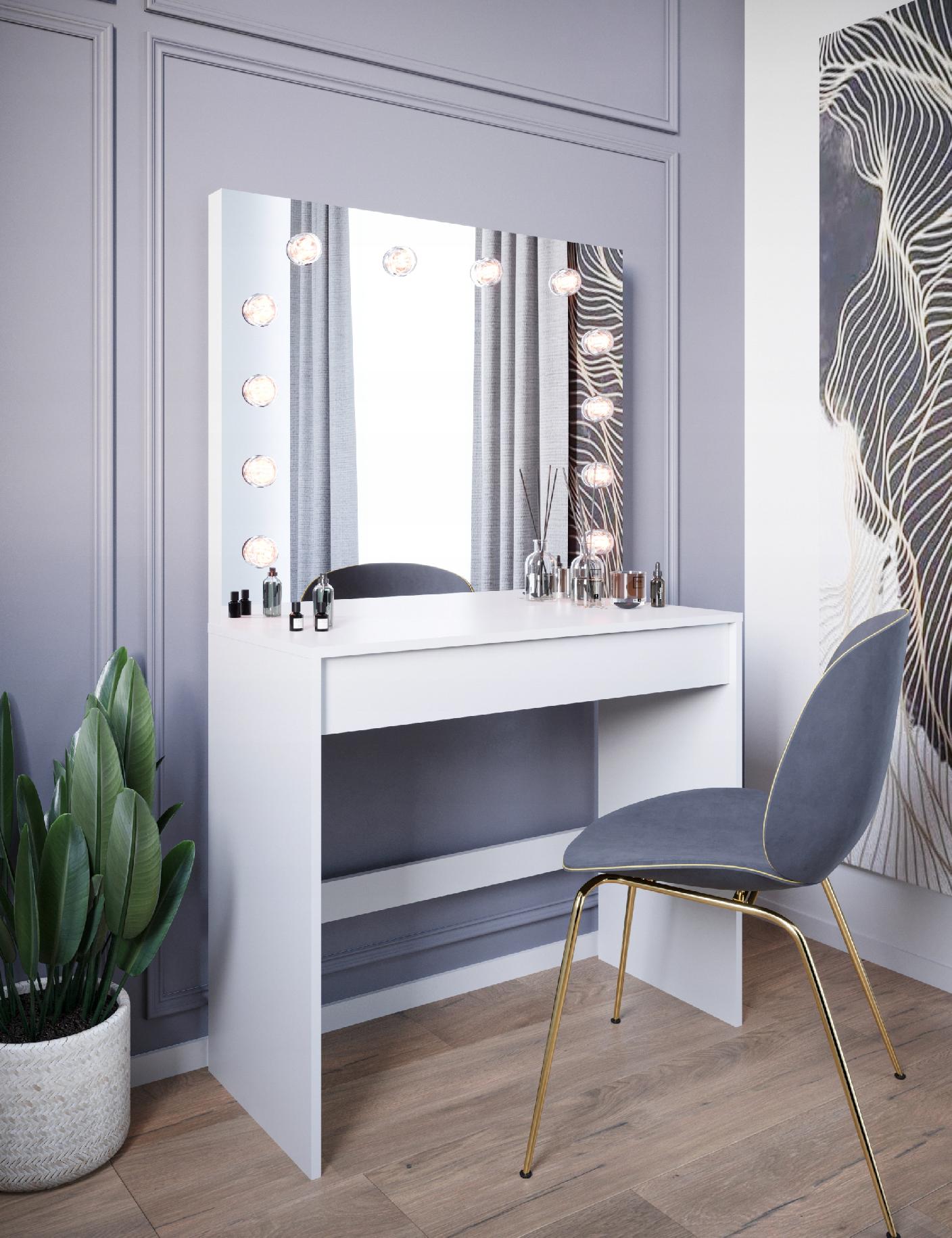 Minimalistyczny styl oraz nowoczesna budowa mebla wkomponują Toaletkę niemal w każde wnętrze.