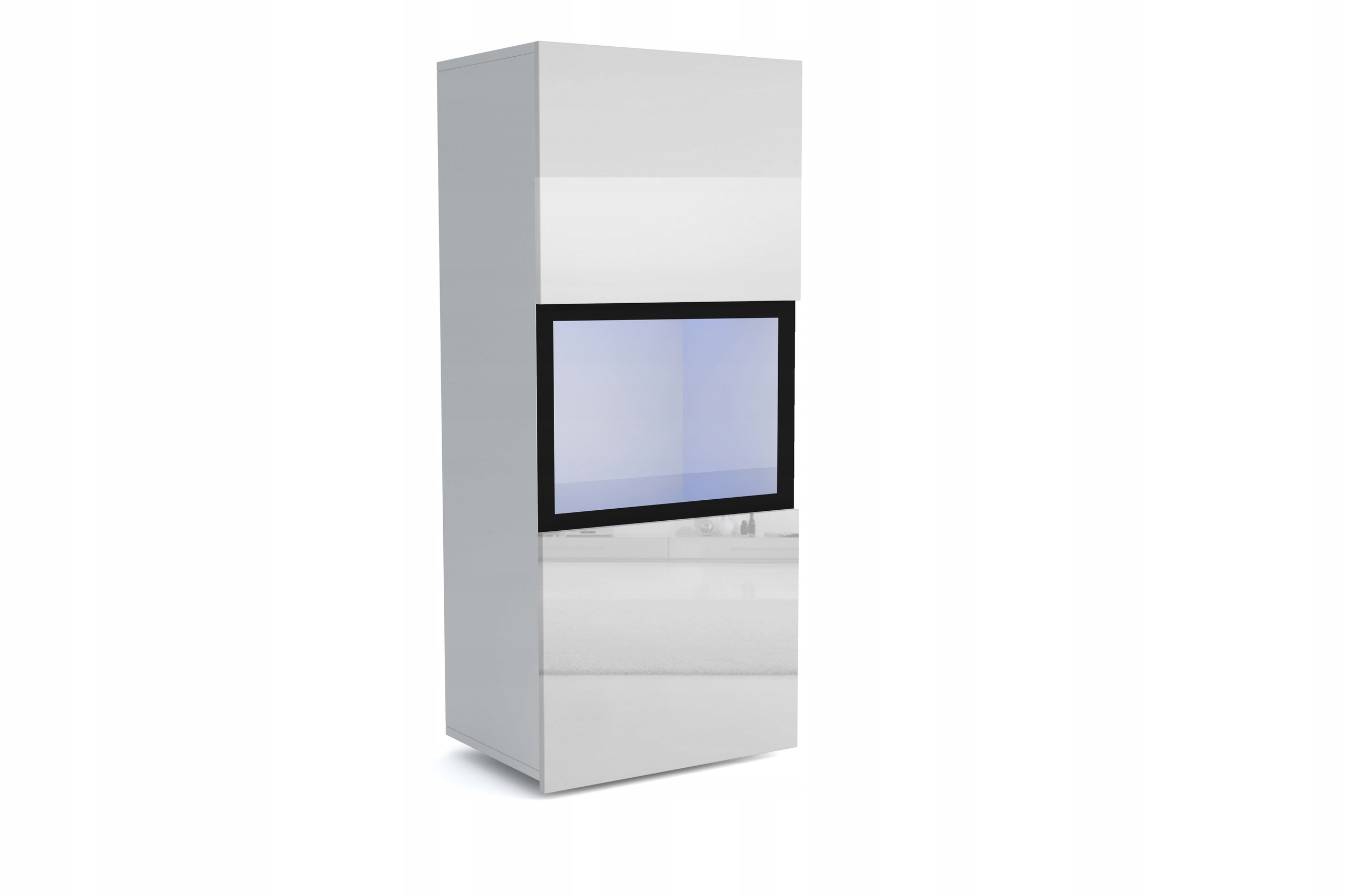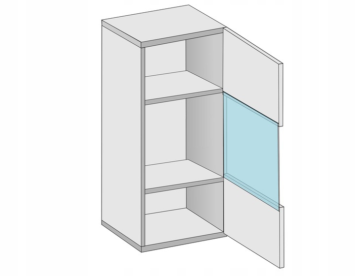 Korpus szafki wykonany jest z laminowanej płyty o grubości 16mm, front stanowi płyta wykonana w kolorze białym w połysku.